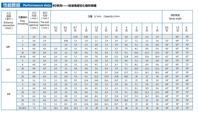 BD系列噴嘴有標準角度和廣角度之分。
